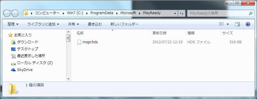 でもSilverlightは「C:\ProgramData\Microsoft\PlayReady」という別フォルダ。