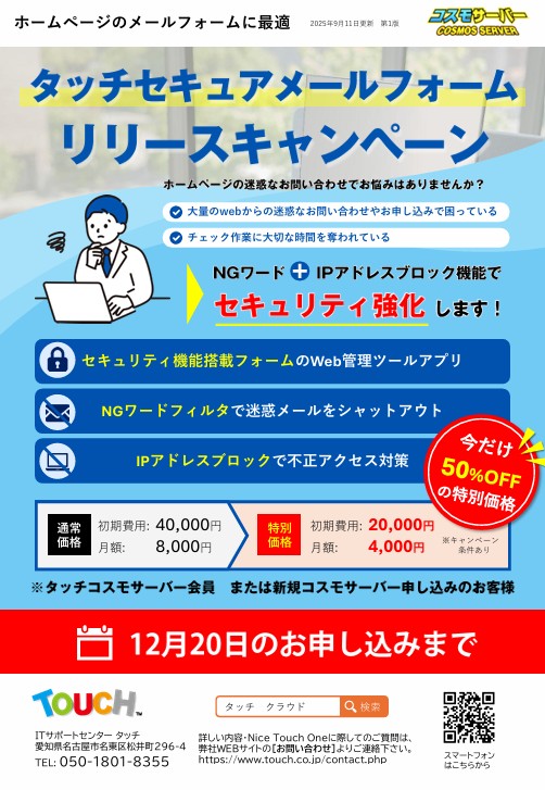 【タッチセキュアメールフォーム リリースキャンペーンのご案内】